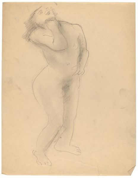 This drawing is a nude study by Mark Rothko, rendered in graphite on paper. The composition focuses on a seated figure viewed from the side, with one leg extended and the other tucked. Rothko's use of line is economical yet expressive, delineating the contours of the body with a sensitivity to volume and form. The sketch is characterized by its open structure and incompleteness. Rothko uses the white space to suggest form, creating a dynamic interplay between presence and absence. The sketch seems to capture the subject's essence rather than providing a detailed representation. Looking at this early work, we can see that Rothko's structural approach extends beyond the abstract color fields for which he is best known. The careful organization of lines here not only defines the figure, but also anticipates his later exploration of space and emotion through abstract means. Art remains a field of constant discovery.