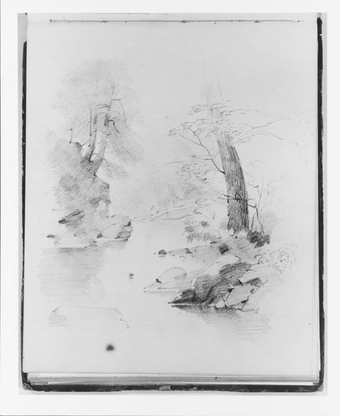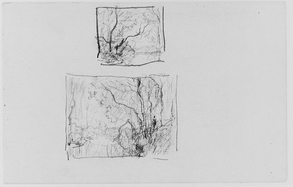 Curator: Here we have a pencil drawing by David Johnson, titled "Study of a Fallen Tree." The date is given as 1827 to 1908, so quite a range! It’s part of the collection here at the Metropolitan Museum of Art. Editor: There’s a real immediacy to it. Raw, even. You can practically feel the give of the graphite on paper. Curator: It’s a study, certainly, so not a finished piece intended for exhibition. Johnson's sketches were clearly intended to document the minutiae of the natural world, reflecting the broader Realist movement of the time. Think about Courbet’s landscapes… Editor: Precisely. And I wonder what kind of pencil he used. The varied densities, the almost blurred lines...the softness. The making is as important as the final image. Curator: The subject matter is telling, too. A fallen tree isn't conventionally beautiful. But Johnson highlights form, texture… perhaps even decline. Think of how landscape painting often reinforced national identity; here, though, there's something more subdued. Editor: Subdued, yes, but also practical. Was it about finding useful timber? Or just cataloging what’s available for future consumption? I am curious about how the paper itself was manufactured and the social conditions of that labor. It’s not just a tree; it’s a product. Curator: An interesting take. The lack of grand narrative definitely places it outside typical landscape painting of that period and makes you focus more on details of daily life. This reflects a shifting audience for art, a middle class increasingly interested in scenes from their own surroundings. Editor: True. It strips away any romanticism. You see the raw materials—the tree’s fibers, the graphite’s greasy mark, the paper pulp, which are connected to particular people and processes in very concrete terms. Curator: Food for thought, certainly, to consider its connection to labor practices. It pushes beyond aesthetic appreciation, allowing us to consider the artwork's place in economic systems. Editor: Absolutely. That consideration adds new layers of depth to a seemingly simple drawing.