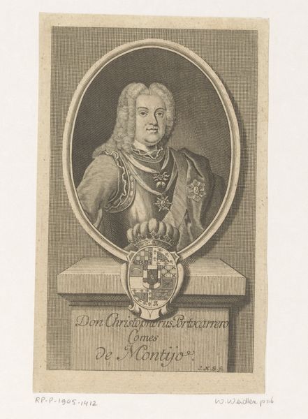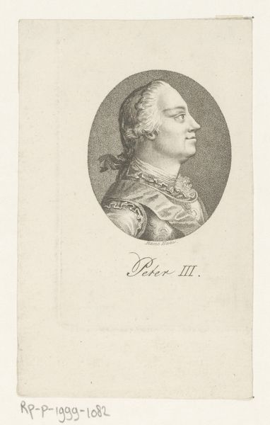 Curator: We’re now looking at an engraving from 1776 titled "Charles Phillipe, Count of Artois, Brother of the King." The portrait, housed here at the Metropolitan Museum of Art, was crafted by Marie Louise Adélaïde Boizot. Editor: My first thought? This guy just stepped out of a porcelain doll collection. A rather fetching one, mind you. It's all very contained, isn't it? Crisp lines, formal setting… He’s certainly presenting himself a particular way. Curator: Indeed. Boizot, working in that Neoclassical style, really captures the restrained elegance, that careful curation of image so crucial to the French aristocracy at the time. See how the floral garland reinforces notions of luxury, prosperity, even supposed virtue. The visual vocabulary is specific, intentional. Editor: "Supposed" is the key word there. I wonder what was happening beneath the powdered wig and fancy frills. It makes me think of performance – putting on a show, playing a role for the public. Royalty as theater, really. Curator: It absolutely was. This image would have been widely disseminated, shaping public perception. Boizot subtly emphasizes Philippe’s profile. In antiquity, the profile offered an ‘objective’ likeness, appealing to notions of truth, or perhaps… legitimacy. Note the insignia – symbols of status and connection that position him relative to others and their corresponding claims to legitimacy. Editor: It’s like reading a secret language, isn’t it? Deciphering what they *wanted* you to see, versus what might’ve actually been there. Maybe he just really loved bows and delicate ornamentation... maybe not. Curator: Possibly not! The portrait served as propaganda of a sort, reinforcing ideals. Now, these ideals weren't universally accepted even in the late 18th century...and in just over a decade the Revolution would explode those ideals... Editor: Yeah, makes you think, doesn't it? All this fuss, all the staging... and then poof! Vanished. Though the image remains. Makes one contemplate the vanity of earthly symbols, doesn’t it? Curator: I think so, and even as the symbols and structures are transient, a work like this remains, encoding both the symbol and its eventual fate for anyone who knows how to look.
