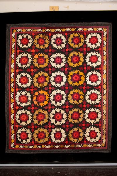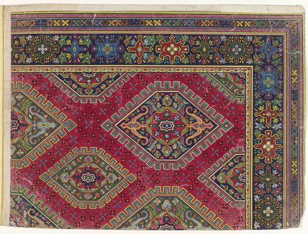 Curator: What strikes you first about this woven textile? It’s an anonymous piece, titled simply "Pillow Cover," dating back to the 19th century. It’s currently held in the collection of the Minneapolis Institute of Art. Editor: It's remarkably intricate. I'm drawn to the richness of the earth-toned color palette, yet also perceive a latent violence in the meticulous repetition of its geometric shapes. Curator: Violence? That’s unexpected. Elaborate? Editor: These intricate patterns suggest an attempt to control chaos, to confine an unpredictable world within rigid structures. The question is: control for whom, and at whose expense? Curator: I see your point. There’s certainly a sense of imposed order. Structurally, the layered patterns exhibit a rigorous formal discipline. Note the nested squares creating a strong sense of internal symmetry. Editor: Exactly, the formalism here reflects the social dynamics that produced it. Who designed this? Who wove it? Was this "pillow cover" intended for everyday use or display? Was it purely decorative, or did it serve symbolic functions linked to cultural or religious beliefs? Curator: Those details are, unfortunately, lost to time. Though the categorization of it under the label "Orientalism" hints at how Western perceptions may have shaped its interpretation and reception. Editor: Precisely. The piece invites us to critically examine how cultural artifacts get exoticized. It requires of us a consciousness to think critically about these artistic traditions outside of Western narratives and market demands that frequently divorce them from lived experience. Curator: I concede your points regarding violence might be a bit extreme, but your challenge to consider its social and cultural context undeniably expands our comprehension beyond mere aesthetics. It’s certainly far more than just a textile woven with geometric motifs. Editor: It reminds us of the urgent responsibility art institutions have to be more ethical in their curation, preservation, and overall handling of non-Western works. Curator: Indeed, looking closely at the color, structure and repeating shapes shows it’s more than initially meets the eye, and looking beyond these elements is critical for a rich and thorough encounter. Editor: Absolutely, it challenges us to consider who benefits from our interpretations.