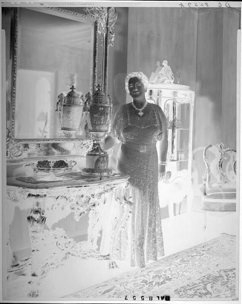 This photograph, by Paul Gittings, presents a boy in a suit standing at a mantelpiece. The photographic process itself is key here. Photography in the mid-20th century, when Gittings was active, involved careful control of lighting, posing, and darkroom techniques to create a desired image. Consider the materiality of the photograph: the glossy surface, the contrast between light and shadow. These qualities are not inherent but achieved through technical expertise and manipulation. Gittings was known for society portraits, catering to an elite clientele. The image suggests a certain level of social aspiration, visible in the boy's attire and the domestic setting. Gittings’ work reflects the culture of display and status that photography enabled, and the complex relationship between representation, labor, and class. Ultimately, this photograph invites us to consider the layers of intention and craft involved in creating seemingly straightforward portraits.