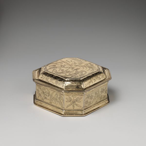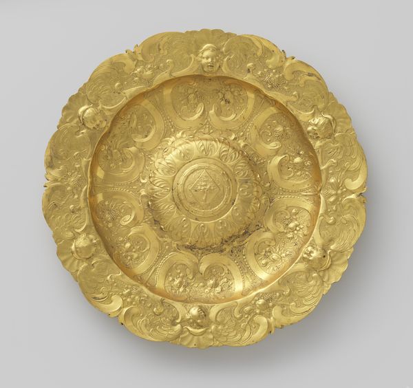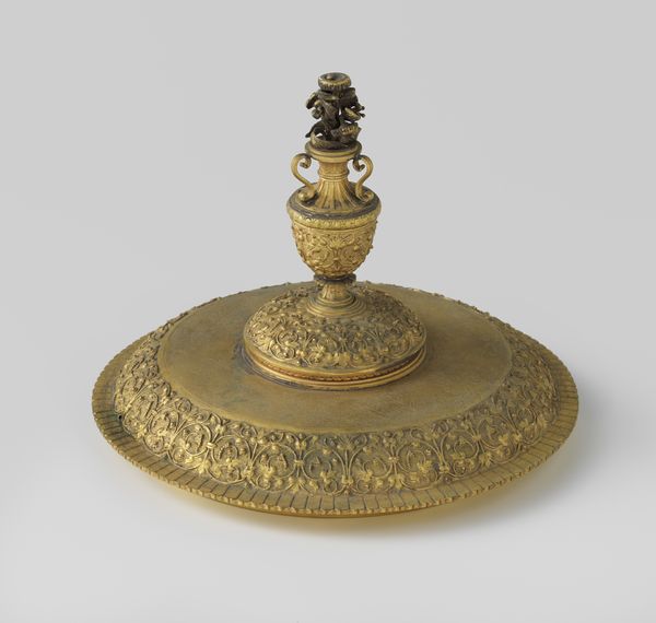 Editor: Here we have a dazzling reproduction – “Galvanoplastische reproductie van een zoutvat rustend op drie engelenkopjes,” dating from before 1878. Crafted by Elkington & Co. from brass and other metals, it lives here at the Rijksmuseum. There's something about this intricate metalwork, perched on tiny cherubic heads, that gives off both an ethereal and functional vibe. What stands out to you? Curator: Oh, my darling, where does one even begin with something as delightfully bizarre as a fancy salt cellar held up by cherubs? It is, in essence, a celebration of form, isn't it? The Renaissance was all about reclaiming classical beauty but through the tinted spectacles of religion, mind you. It’s interesting to me the marriage of something utterly quotidian – salt – with divine imagery. Almost comical. Don’t you think it’s making the salt sacred, almost? Editor: I do. But who decides something like this should be made in brass and metal? How did this choice influence how we perceive the artwork? Curator: Brass lends itself to intricacy like this. But there’s a performative element here as well. Someone of significant social standing showing off their wares... and wealth. Can you imagine seeing this displayed centuries ago in some grand manor with the candlelight dancing across the brass? Editor: It's less about seasoning, and more about showing. I see it now! This really opens your mind. Thank you. Curator: My dear, isn’t that what art’s all about?