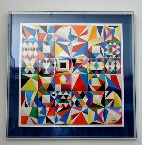 Curator: Immediately, I get this overwhelming sense of calm. It’s all these pastel colours on a teal background with simple shapes. Is it some sort of diagram? Editor: You know, that's a beautiful way to put it. We're looking at “De la Serie Cartas Celestes,” or "From the Celestial Letters Series," created by Lolo Soldevilla in 1956. Soldevilla was a pivotal figure in the Cuban concrete art movement, a group that shifted away from traditional representation to pure abstraction. Curator: Oh, concrete art, like those Bauhaus experiments? That makes sense! The shapes aren’t random then; they're deliberately basic, almost like minimalist building blocks. It still feels whimsical to me. Like staring at a blueprint of a playground dream. Editor: Precisely! Her work from this period reflected Cuba’s post-revolutionary moment of searching for new, utopian forms of social organization and expression. The lines connecting each shape almost read as constellations plotted onto a serene cosmic chart using watercolour on canvas. Curator: Celestial letters indeed! The lines shooting out of those circular orbs…it feels so connected, like everything is influencing everything else. Are the colours supposed to represent something, too? Or am I looking for meaning where there is none? Editor: While there isn't a codified color key, the use of simple geometric forms invites the viewer to consider the emotional and symbolic weight they carry within a socio-political context. How did geometric abstraction embody Cuba’s collective vision during that time? The answer to that isn't always apparent in this piece of art. Curator: Fascinating. To think these shapes contain all this hidden history… and the whole composition comes across like a secret language about freedom. Editor: Well said. Lolo's art during the Cuban Revolution demonstrates an act of visualizing freedom through non-objective imagery, thus leaving room for all sorts of conversations. Curator: Thank you for helping decode that with me, very illuminating! Editor: Always a pleasure to bring a broader understanding to the artistic practices behind art.