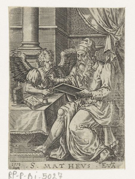 Curator: The delicacy of the line work is immediately striking. Guido Reni's "The Holy Family," housed here at the Harvard Art Museums, presents the iconic group with a gentle, almost ethereal quality. Editor: Yes, and the composition, even in this sketch-like form, uses those soft lines to convey a scene of intimate familial exchange. There's a visual harmony in the positioning of the figures and the drapery. Curator: Absolutely. And the background architecture serves as more than just setting; those classical columns echo the idea of the Church as a pillar of society. Editor: I agree, and I also notice that the linear technique almost abstracts the figures, lifting them from reality. Curator: Indeed, Reni uses the image to evoke both familiarity and a sense of the divine. Editor: It is a good example of how the simplest visual choices affect meaning so profoundly. Curator: The piece offers a quiet reflection on faith and family. Editor: It invites us to examine our preconceived notions about both, doesn't it?