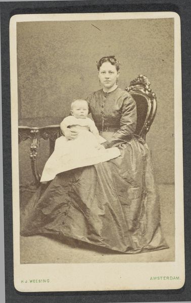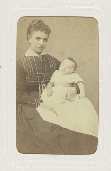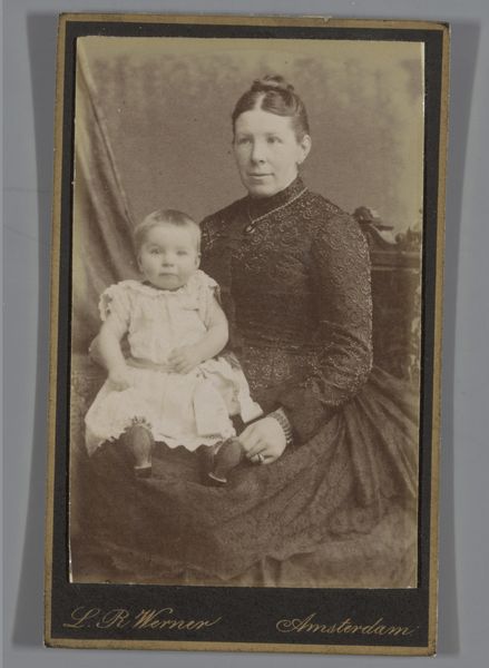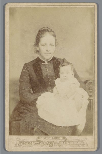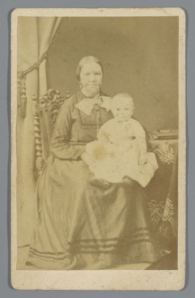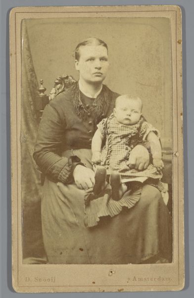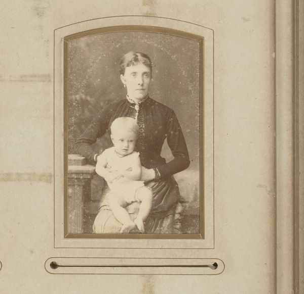 This portrait of an unknown woman and child was made by the Klumpes Brothers in the Netherlands, most likely in the late 19th century. Small photographic portraits like this were popular at the time, especially among the rising middle classes. Photography studios arose to meet this demand, offering families and individuals the opportunity to record their likeness for posterity, even without the means to commission a painting. The woman’s dark dress and hairstyle would be consistent with the fashions of the 1880s. The image creates meaning through social codes of the time. The mother and child are dressed in their best, a reflection of the social pressure to present oneself in a respectable manner. This seemingly simple portrait is a window into the values and aspirations of a particular time and place. To understand this image better, we might research the Klumpes Brothers studio and the market for photography in the Netherlands at this time. Old newspapers and social histories may reveal more about the sitters' lives and the cultural significance of such portraits.