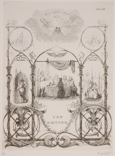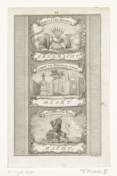 Curator: What a charming scene! This is an embroidered sampler created by Mary Waine between 1792 and 1795. It's currently part of the Metropolitan Museum of Art's collection. Editor: It’s quaint. Almost naive in its depiction. I notice the composition is divided into horizontal registers, like a layered landscape. And it appears to be painstakingly crafted. Curator: Indeed, the labor involved would have been considerable. Think about the sourcing of the textiles, the dyeing process, and then the hours spent stitching. It wasn’t merely decorative; it was an act of making and a demonstration of skill, all within a strict set of cultural expectations. Editor: I’m struck by the image of the demure female figure at the bottom of the scene and I wonder, what kind of education did she receive and how was art employed? How were women viewed in that social hierarchy? This needlework provided an avenue of expression but how complicit was it in the broader social structure? Curator: Excellent points! These samplers often functioned as both a practical exercise and a display of accomplishment for young women. We see elements of drawing, weaving, and what we now call fibre art all in one piece, blurring those lines between "art" and "craft". Editor: The little figures have a primitive, folky quality, and they present genre scenes. We have this idyllic rural life represented with a horse, cows and sheep which gives us some insight into society’s values in late 18th-century United States, doesn’t it? Curator: Precisely! It offers us a window into the aspirations and visual culture of the time. This piece straddles the personal and the societal, giving glimpses of individual expression deeply intertwined with a cultural aesthetic. Editor: Absolutely. I'm leaving with a newfound appreciation for these supposedly simple creations and their ability to reflect society in such profound ways. Curator: And to also remind us that these samplers, despite their scale, invite conversations that are much larger than the textile itself.