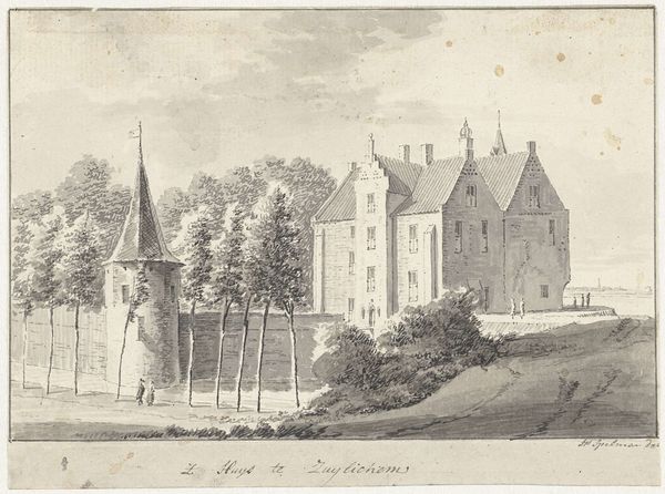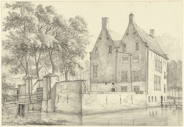 Pieter Jan van Liender made this drawing of Kasteel Geldermalsen using pen and gray ink, and gray wash sometime in the 18th century. Drawings like this one give us insight into the cultural values of the Netherlands during this period. It's interesting to note how the artist has carefully depicted the architecture of the castle and its surrounding landscape, emphasizing order, balance, and classical motifs that were fashionable at the time. This aesthetic preference reflects the values of the upper classes who commissioned such works, revealing their desire to project an image of sophistication, control, and wealth. We can use sources like estate records, social histories, and architectural surveys to further explore the role of the castle within the Dutch social landscape of the 1700s. Through this, we realize the meanings of art depend on the complex social and institutional contexts in which they're created.
