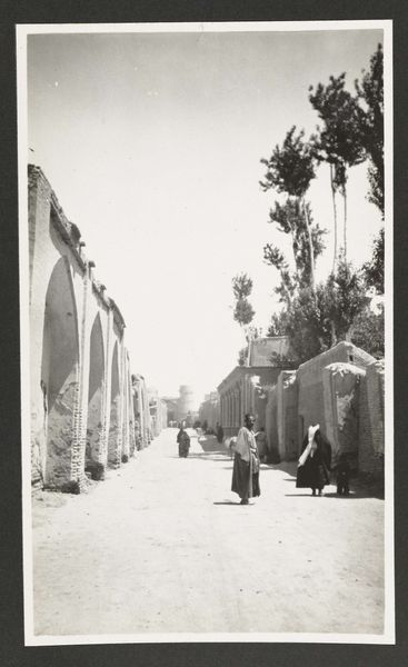 Curator: Gerard Castello Lopes’ photograph, simply titled "Lisboa," captures a sprawling cityscape. The tonal range just whispers of light. It's like a memory barely held. Editor: My first impression is that it feels simultaneously intimate and expansive. The two figures in the foreground feel so human against the sheer scale of the city behind them. Are they going to a picnic, or something? Curator: Perhaps, or maybe they are returning home. Lopes’ work often explores the quiet dignity of everyday life within these kinds of grand urban settings. It almost feels like a stage where the ordinary becomes extraordinary. Editor: Exactly! And I'm thinking about how photography, especially in its early days, democratized city views. Instead of paintings for the wealthy, you had photographic prints available more widely, shaping public perceptions of places like Lisbon. Curator: And how many perceptions are held within it? That’s something that is never known by the artist, or even the museum, I suppose. Editor: I agree! This image speaks volumes about the passage of time, both in the city's development and in our individual lives.
