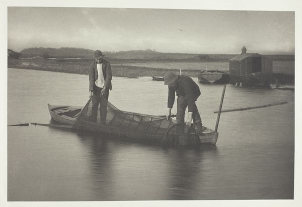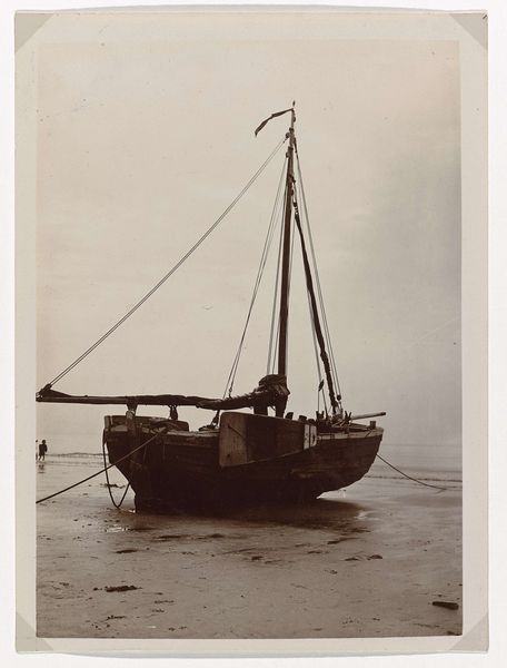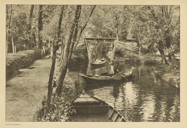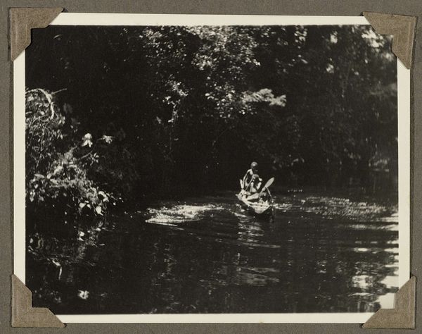 This photograph, titled 'Edith Jetten met een parasol in een boot,' captures a moment with a camera, though the artist is now anonymous. It’s all in black and white, and you can see how the light falls on Edith's face, under that parasol. The textures feel quiet, but the stillness in the image really lets you focus on the contrast between the textures in the boat and foliage on the shore. There’s something about how the artist chose to frame her, like she's floating there, waiting for something to happen. I love how the details in the water and the plants are all kind of soft, but Edith herself, and the boat she sits in, are more crisp, it makes you notice her as the main subject in the piece. It reminds me a little bit of the work of someone like Man Ray, playing with light and shadow to create something that feels both real and dreamy at the same time. It makes you wonder what she was thinking, sitting there in that boat.