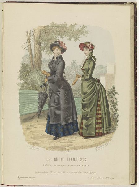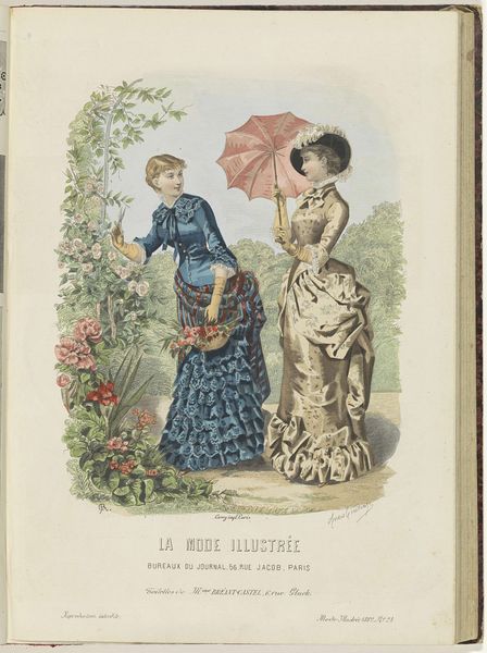 This is a print from "La Mode Illustrée" in 1883 by Charles Rabouille, presenting the latest fashions designed by Mme Bréant Castel. Notice the parasols carried by both women. These are not merely functional items but potent symbols of status and protection. The parasol extends far beyond its literal function, echoing the protective wings of ancient deities, shielding one from the harsh gaze of the sun or, metaphorically, from the intrusive eyes of society. We can trace this motif back to ancient Egypt and Assyria where parasols signified royalty. The parasol’s evolution reflects a fascinating interplay between functionality, status, and a deep-seated desire for protection. As you gaze upon the image, consider how the parasol weaves its way through history, adapting, transforming, yet always carrying a hint of its ancient origins. It’s a symbol that reminds us of our enduring quest for status and safety.