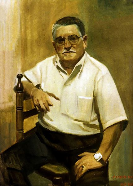 George Pemba painted this self-portrait in 1987, using oil paint. What strikes me first is how Pemba used these buttery strokes of paint to build up the form, especially in his face, like he's sculpting with pigment. You can almost feel the give and take of the brush against the canvas. And look at how he handles the white lab coat - not just a flat plane, but a field of subtle variations in tone and texture. There's a real push and pull between representation and abstraction, you know? That little dab of crimson on the palette, for instance – it's like a tiny explosion of pure color, existing for its own sake. Pemba's work reminds me a bit of early Philip Guston, that same kind of loose, intuitive handling of paint. It really speaks to how art is an ongoing conversation, where artists build upon and respond to each other's ideas, and how a painting is never really finished, just abandoned at some point. It's all about keeping the dialogue open.