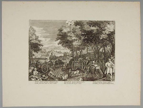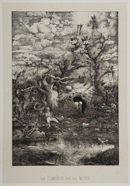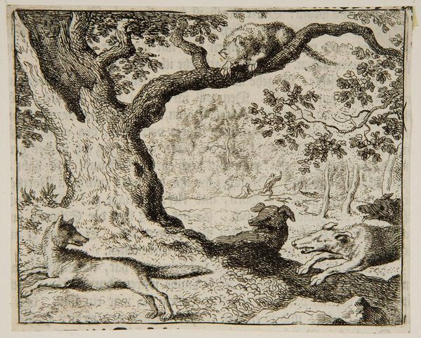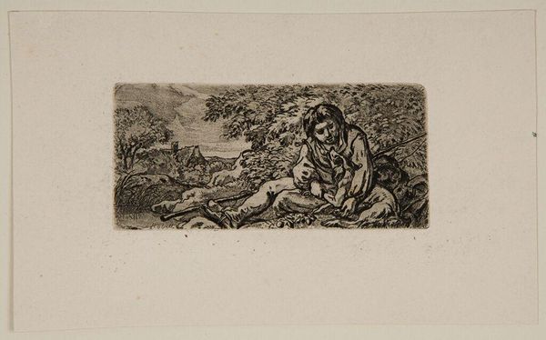 Curator: Today, we’re looking at a print by Claude Lorrain, titled "Shepherds and Cattle Crossing a Brook." Editor: Immediately, I get this feeling of pastoral tranquility, like a scene from a forgotten myth. The textures are so rich for a print. Curator: Lorrain often idealized the countryside, reflecting a nostalgia that appealed to the sensibilities of his aristocratic patrons. Etchings like this one democratized access to his vision. Editor: There’s a real contrast here. The wildness of the landscape versus the almost staged placement of the figures. It makes you wonder what their stories are. Curator: It’s a calculated composition, very much in line with the classical tradition, yet it captures a fleeting moment of rural life. Editor: I keep coming back to the light. It feels like it’s about to rain but there's a soft glow trying to break through. It is quite a tender scene. Curator: Indeed, Lorrain understood how to imbue landscapes with emotion, making them more than just pretty scenery. Editor: I think that tension – the real and the ideal – is what makes it sing. It’s a memory of a perfect day that probably never was.
