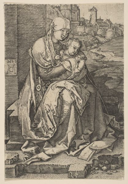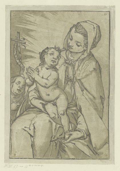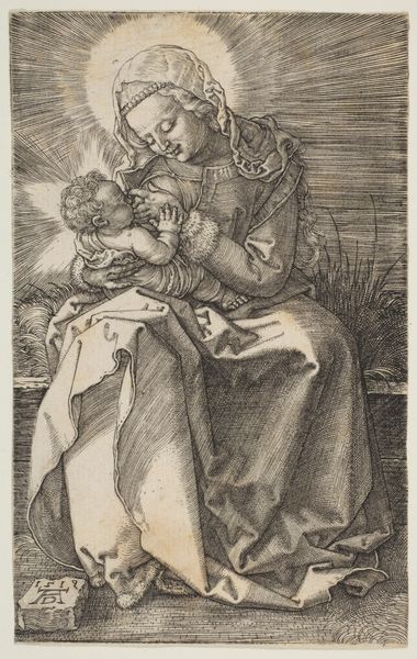 This print, made by an anonymous artist, depicts the Virgin Mary reading with the infant Christ. It is a small engraving on laid paper. Prints like this played a crucial role in spreading religious imagery across Europe. We can think about this image in terms of the rising literacy rates of the time, and the increasing availability of books. The image suggests the importance of reading and religious instruction, reflecting humanist values within Christianity at the time. The presentation of Mary as a nurturing mother, absorbed in reading, may be rooted in the changing social role of women during the Renaissance. The image makes use of recognizable visual codes, such as the halos above the Virgin and Christ, indicating their holiness. Understanding this print means researching both the history of printmaking and the changing social roles in the period it was made. The meaning of art changes in different social and institutional contexts.