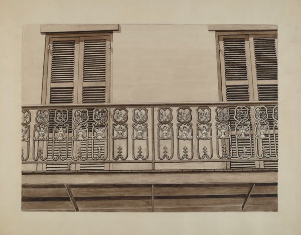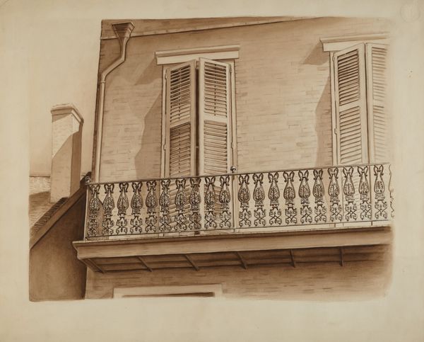 Al Curry made this drawing of a wrought iron balcony rail at an unknown date, using graphite and brown wash on paper. It presents us with a fragment of a building, cropped to focus on the decorative ironwork. Balconies like this are common in New Orleans, where the artist lived and worked. They evoke the city’s unique cultural history, a blend of French, Spanish, and Caribbean influences. The wrought iron, while decorative, also speaks to the city’s history of enslaved labor. The image subtly highlights the social divisions that shaped the city’s architectural landscape. To fully appreciate the drawing, we might consult local archives, architectural surveys, and social histories of New Orleans. By placing art within its social and institutional context, we can better understand the power of images.