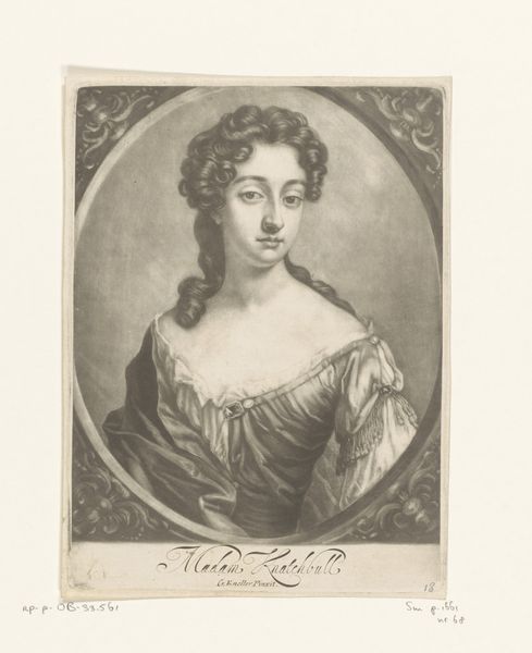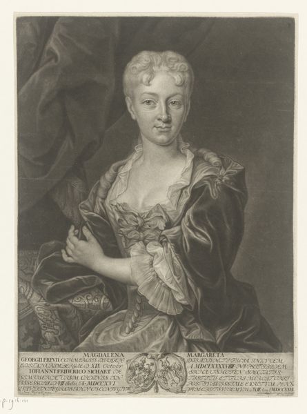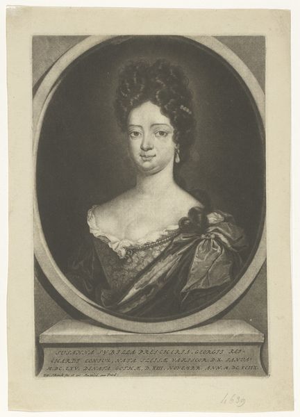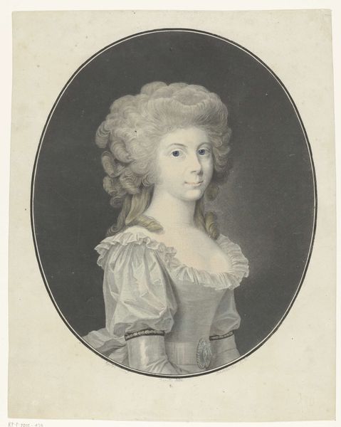 Editor: Here we have J.F. Clemens' "Maria Sophia Fredericia," an engraving and etching from 1800. The Neoclassical style, combined with the crisp lines of the print, gives it a formal feel. How should we interpret it? Curator: Well, first, consider the labor. Printmaking, especially etching and engraving, demanded skilled craftspeople. How does this reproduction technology democratize or gatekeep access to this image of nobility? Think of the dissemination of such prints—were they luxury items, widely circulated, or carefully controlled? Editor: That’s interesting. I hadn’t thought about who had access to these prints. Was it a way of promoting a specific image of Maria Sophia Fredericia to a wider audience? Curator: Precisely. And look closer at the materials – paper, ink, metal plate. Each choice impacts the final product. Were these materials readily available or considered precious? What does the deliberate control of materials and production tell us about 18th-century Denmark? Also, the crown— what connotations does it evoke about class, industry and luxury? Editor: It’s not just about aesthetics but about the entire production chain and how it reflects society! This wasn't just an artistic choice but an economic one, shaped by the material realities of the time. Curator: Exactly! Thinking about the piece as a material object rooted in its time can completely alter how you perceive its subject. We gain more understanding by looking into these historical means of production. Editor: I never really considered it in this manner. It has provided me with much food for thought on this engraving and the production context in the Danish kingdom in the late 1700s.