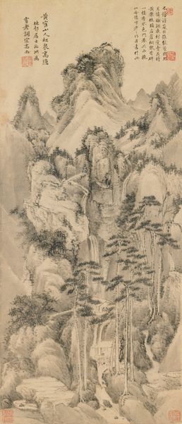 Editor: We're looking at "Landscape in the style of Huang Gongwang," a tempera and ink drawing from 1581 by Mo Shilong, at the Metropolitan Museum of Art. There’s a delicate, almost ethereal quality to the mountains, created with soft washes of ink. How would you interpret its formal aspects? Curator: Indeed, the drawing exemplifies the literati tradition's emphasis on brushwork and ink tonality. Note how the artist utilizes varying ink densities, achieving a subtle atmospheric perspective. Consider the compositional structure—the interplay between the solid, voluminous mountain forms and the delicate, almost skeletal, trees in the midground. The eye is drawn upward, navigating a carefully constructed vertical space. It is this orchestration of pictorial elements that defines the aesthetic experience. Editor: The calligraphy seems integrated into the overall composition rather than just being an addition. Is that correct? Curator: Precisely. The calligraphic inscription isn’t merely descriptive but actively contributes to the overall visual texture. The placement, the size, and the style of the script create a dynamic tension against the stillness of the landscape itself, a conversation between word and image, mark and void. Editor: It's fascinating how the lack of bright colors emphasizes the skill of the ink-wash technique. I also noticed the details, like the minuscule houses nestled in the mountain. What do those intimate scenes contribute? Curator: Those small details act as anchors, inviting the viewer to enter the landscape, to partake in its stillness. Their presence underscores the relative scale, magnifying the grandeur of nature. Moreover, their presence underscores the relationship between humans and nature, and they become structural and metaphorical supports in the overall aesthetic effect. The artist utilizes carefully placed strokes that become part of the complex surface. Do you notice their subtle variations in width, length, and angle? Editor: Yes, now that you mention it. These stylistic attributes are interesting in their implementation. Curator: The formal elements create a self-contained system of references in ink-wash technique, one that remains captivating through its own intrinsic order. Editor: I see now. Thank you for making that clearer to me.