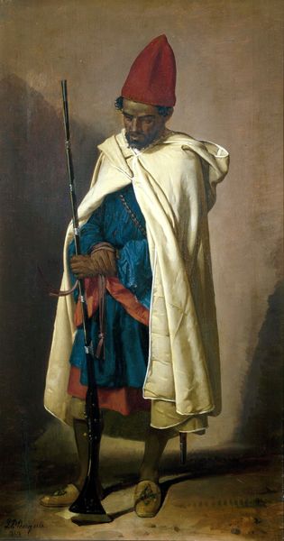 Editor: So, here we have "Grand Vizier Nevşehirli Damat İbrahim Paşa," an oil painting by Jean Baptiste Vanmour from around 1727-1730. There's something very still and imposing about him, a kind of quiet power in the portrait. What stands out to you most when you look at this piece? Curator: Funny you say "quiet power"— that's exactly the impression I get! It's more than just a portrait, isn’t it? It's like a frozen moment, a study of status and... vulnerability? The soft palette and the almost ethereal quality of his robes belie the firm hand he likely held. Look at how Vanmour uses light; it isn't just illumination, it’s almost a character itself, highlighting the textures of his clothing and the gravitas of his face. And that turban—it's practically a statement on its own! Almost daring you to see beyond the opulent layers of the Ottoman court. Doesn’t it make you wonder what he’s holding in his hand? Editor: It does, like a tightly held secret. It's fascinating how you mention the vulnerability. I wouldn't have immediately jumped to that conclusion, but it does add another layer of complexity, making the Vizier feel more human. What does this tell us about how Vanmour was painting people versus just painting their roles? Curator: That's the genius, I think! Vanmour doesn't just capture likeness; he distills something about the *being* within. And placing this artwork into its cultural moment; remember, he's painting during the Tulip Era, a period of relative peace and cultural exchange with Europe. It wasn't just documentation; it was part of a much wider, sophisticated conversation. Editor: I’m looking at this painting in a totally new light. Curator: That’s the beauty of art, isn’t it? A single brushstroke can open up entire worlds, provided you're ready to ask questions. It almost inspires one to pick up the brush oneself, doesn't it?
