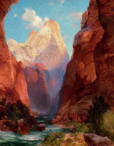 Thomas Moran's "Virgin River, Utah" captures the sublime American landscape with vibrant strokes. The towering rock formations, bathed in the ethereal glow of the setting sun, evoke a sense of awe and spiritual contemplation. The motif of the mountain has consistently represented a site for divine encounter. We see this in the Old Testament, in the Sinai desert, and in numerous other mythologies, from Mount Olympus to Mount Meru. Moran taps into this collective memory, presenting the Utah landscape as a sacred space. The golden light enveloping the scene, reminiscent of religious iconography, further elevates the landscape, transforming it into a quasi-religious experience. It is a powerful force that engages viewers on a subconscious level, evoking a sense of wonder and reverence for the natural world. It speaks to our primal connection with nature and the enduring human quest for spiritual meaning in the landscape. The motifs and symbolism used are cyclical. They resurface, evolve, and take on new meanings in different historical contexts.