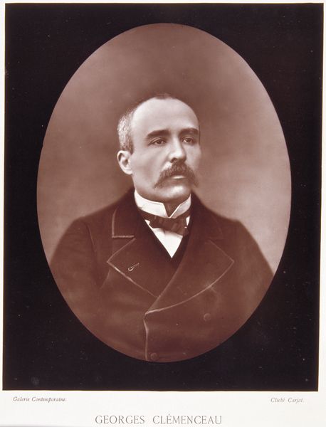 Curator: Let's consider this intriguing portrait rendered in pencil by Joseph Edouard Van Looy, sometime between 1881 and 1912. It is a likeness of Françoise L'Hoëst. Editor: My initial impression is one of reserve. The palette is muted, of course, being pencil on paper. But beyond that, there’s a stillness to the man, a formality. His mustache is impressive, almost like a mask. Curator: Masks and identity... precisely. Look at how the artist meticulously renders Françoise's features. But also consider how the portrait is placed. Note the date it was created, think about societal roles then, and tell me what power dynamics are visualized. How is masculinity presented here? Editor: He wears a dark jacket and light shirt with a dark, barely visible, tie. That look signifies middle-class respectability to me. The pin on his lapel indicates an affiliation. But the gaze… that’s what holds me. Curator: What do you find in his gaze? Editor: There is intensity but not arrogance. Maybe quiet determination, like the steady gaze we sometimes see in depictions of saints. The rendering of the light across his brow signifies thoughtfulness. I see intelligence, and even melancholy. Curator: It’s interesting that you interpret a certain melancholy in the rendering. Is this a comment on societal conditions as they existed during the late 19th and early 20th centuries? In what context should we place Françoise? And to what cultural archetypes does he conform or diverge from? Editor: You bring up an important question. Is Van Looy portraying Françoise, or a representation of patriarchy? Perhaps there's even an intentional echo of iconic, paternal figures – an almost stern father-image presented in a soft drawing style. Curator: It certainly invites broader reflection. This work allows for critical examination of societal structures embedded within portraiture and offers viewers a point of entry into thinking critically about identity and representation. Editor: Absolutely. Considering the potential layers of cultural memory contained within, it adds another dimension to this intriguing drawing.