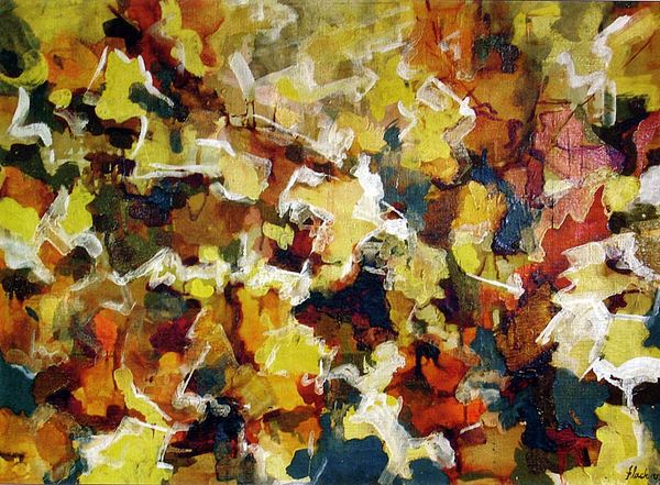 Requena Nozal made this painting, Vitral III, a 50 by 65 cm work, with layers of vibrant colour applied like stained glass. Looking at the surface, I’m drawn to the way Nozal builds up the paint. It's a tactile process, each stroke a record of the artist's movement and decision-making. There's this one spot, a cluster of yellows and greens, where you can almost feel the pressure of the brush against the canvas. The paint is applied in these angular blocks, but somehow they float and bleed together. It reminds me of the early abstract expressionists, like Joan Mitchell, who used colour and gesture to evoke emotion. The conversation between artists across generations is a reminder that art is an ongoing exploration, a dialogue that stretches across time. Each artist brings their unique perspective, their own voice, to the conversation, enriching and expanding our understanding of what art can be.