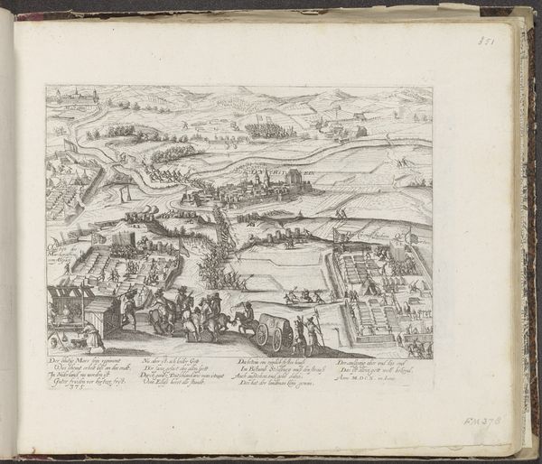 Editor: This is Frans Hogenberg's print, "Siege of Orléans and Murder of the Duke of Guise, 1563," created around 1567 to 1571. It’s an engraving, and the detail is incredible! The mood feels tense, almost like a stage play unfolding. What do you see in this piece, looking at it from a broader context? Curator: What immediately strikes me is how this seemingly historical scene functions as propaganda. Hogenberg’s detailed depiction isn't just documentation; it’s a deliberate construction. Consider the timing - created years after the events, during a period of intense religious and political conflict. How might this influence our interpretation of the artist's choices and the overall message? Editor: Propaganda... So you're saying the artist may have had a particular bias? I was struck by the details of daily life represented alongside the dramatic siege and assassination. Curator: Precisely. And consider the broader implications of representing violence so graphically. These images weren't consumed in a vacuum. They were part of a larger discourse shaping public opinion and fueling further divisions. The Duke’s assassination, depicted here, isn't merely a historical event, it's a turning point in the French Wars of Religion. How does depicting violence in such a manner, especially during that time, potentially ignite passions and solidify already entrenched positions within the social fabric? Editor: So, seeing the art as purely historical is missing the point – it’s intertwined with the politics and biases of the time? That shifts my perception quite a bit. Curator: Exactly! By examining this engraving, we’re not simply looking at a past event; we’re engaging with a complex network of power, belief, and representation that continues to resonate today. And that opens a new dimension of discussion and analysis. Editor: I will definitely have to rethink how I view history conveyed through art; this was helpful!