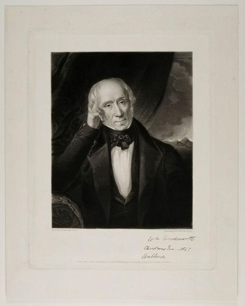 Curator: This is Charles Picart’s rendering of Mr. James Watt. I find it interesting how he uses shadow to create a sense of depth and gravitas. Editor: The image seems imbued with a sense of duty and innovation, doesn't it? I can almost feel the weight of societal expectation in the very lines of his coat. Curator: Speaking of lines, the crisp, precise hatching and cross-hatching suggest a meticulous process, reflecting the era’s emphasis on scientific accuracy and the rise of industrial production. Editor: Indeed, the image’s symbolism speaks of progress, intellect, and the dawn of a new age fueled by steam and industry. He is almost an icon of the Industrial Revolution. Curator: I see it as a material representation of intellectual labor, capturing the very process of manufacturing ideas. Editor: Perhaps we both see parts of the whole. Curator: A fitting end, I think.