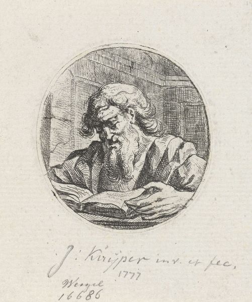 This engraving of Monsieur de Voltaire was made by Stanislas Jean Boufflers. In it, we see Voltaire, the celebrated Enlightenment writer and philosopher, quill in hand, deeply immersed in thought at his desk. Voltaire was a figure who challenged the norms of his time, advocating for freedom of speech, religious tolerance, and separation of church and state. He was not afraid to use his words as weapons against injustice and oppression. As such his work became aligned with the French revolution. The image captures him in a moment of intense concentration. You can almost feel the weight of his thoughts as he crafts his arguments, challenging the status quo. Boufflers immortalizes the intellectual and political fervor that defined Voltaire's life and the broader Enlightenment era.