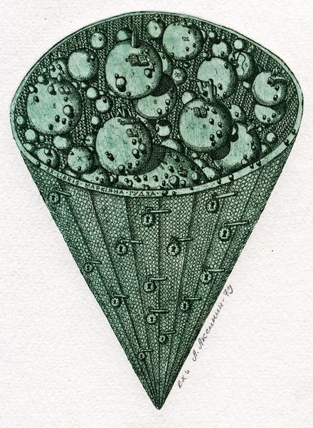 Oleksandr Aksinin made this print called PF 1979, but what kind of print, you may ask? To me, it looks like a careful, almost scientific illustration, rendered in a muted palette. Up close, the texture is built from countless tiny marks, it is as if Aksinin is feeling his way through the image one tiny piece at a time. This kind of mark-making takes time, patience, and a certain kind of trust in the process. Look at the way the repeating forms build into larger wholes, like a colony or an organism. Each layer is slightly different, as if adapting to its environment. The piece reminds me of the obsessive detail of Hilma af Klint's botanical drawings. Both invite us to consider how the tiniest elements can come together to create complex systems, and how art can be a way of mapping the unseen forces that shape our world. Like Klint, Aksinin embraces ambiguity and invites us to bring our own associations and interpretations to the work.