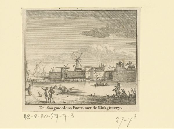 Editor: This engraving, "Brand in Paramaribo, 1821," is attributed to Pieter van der Meulen. It depicts a fire engulfing a cityscape. I find the contrast between the detailed ships in the foreground and the chaotic blaze in the background quite striking. How would you interpret the composition of this print? Curator: The spatial arrangement immediately draws attention. The fire dominates the upper portion of the image, its thick, billowing smoke contrasting sharply with the relative calm of the ships below. What effect do you think this dichotomy has on the overall reading of the work? Consider the perspective, how it flattens the city yet foregrounds the ships. Editor: It almost feels like the ships are observers, separate from the disaster unfolding onshore. The artist is contrasting their stillness with the violent burning happening on the coast. Curator: Precisely. Note the technique: tight, controlled lines to delineate the ships and the subtle gradations used to depict smoke and fire. These formal choices contribute to a visual tension, don't you think? Does the tight rendering change our perception compared to a more expressionistic fire? Editor: Absolutely. The meticulous details give it a sense of documentary, almost like a news report. Something less tangible perhaps than pure visual analysis is how that sense of detachment creates tension. I hadn’t considered how closely the artist's line-work shaped my impression of what this print is trying to express. Curator: Indeed, formal choices always mediate our understanding. By focusing on those choices, we reveal what cultural documents these artistic renderings ultimately are.