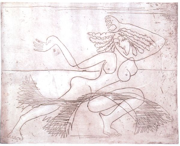 Editor: This is Jacques-Louis David’s sketch, "Banquet Scene (The Roman Album)." The composition of nude figures reminds me of ancient friezes. What catches your eye in this work? Curator: The linear quality is indeed striking. David's emphasis on contour and form over color directs our attention to the classical ideals he so admired. Note how the figures are arranged in a shallow space, almost as if on a stage. How does this calculated arrangement affect your reading of the scene? Editor: It feels very staged, like a tableau vivant. The figures, while nude, don't seem particularly sensual. Curator: Precisely. David uses the linearity and the implied geometry to prioritize intellect and order. This echoes Neoclassical principles, where reason and clarity reign supreme. The very lack of sensuality becomes a deliberate artistic choice. Editor: That’s fascinating, seeing how the restraint itself communicates so much. Curator: Indeed. The power of art lies as much in what is omitted as in what is included.