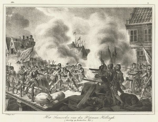 Simon Fokke made this print of the Amsterdam City Hall fire in 1762. It's an etching, made by drawing into a wax-covered metal plate with a sharp needle, then bathing it in acid. The acid bites into the metal where the needle has exposed it, creating lines that hold ink, and allow for printing. This process could have been used to produce inexpensive images, disseminating information rapidly. The print medium also suggests that the making of multiples was central to the work’s purpose. The lines of the figures and the building’s architecture would have demanded incredible precision. Also note the way that Fokke created an image of immediacy; the speed and terror of the unfolding scene of the fire. The act of reproduction is key here. The image was not just documentation but was also a means of bringing the news to the public. So, in considering the fire, we also have to consider the crucial role that printmaking played in public life.