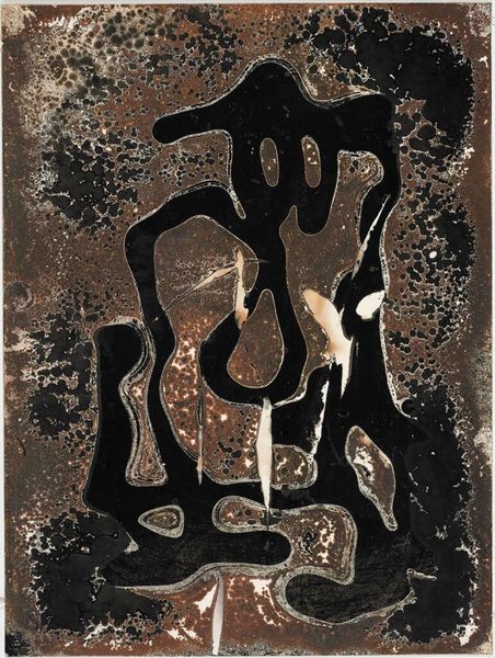 Vajda Lajos’s "Silver Gnome" is made with what looks like ink and paint. I love the scumbled ground of silvers and grays, almost like the stuff of clouds, the support peeking through, and how this is contrasted with the marks making up the gnome. A tightly clustered mass of browns and tans, built up of many tiny marks that remind me of hair, it has so much concentrated energy. The gnome is a strange but lovable character. The pale blue triangle sitting above the hands is a very nice touch, it’s like a portal to a different kind of space, maybe the space of the imagination, and it’s echoed by the two almond-shaped eyes looking out at us. The surface is ambiguous, full of these kinds of plays between foreground and background, flatness and depth. It makes me think of Paul Klee’s childlike figures and playful approach to abstraction. It’s a nice reminder that art can be both serious and totally weird.