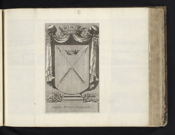 This engraving, Wapenschild van Närke, features a shield with crossed arrows and roses, all rendered with precise lines and textures through the intaglio printmaking process. The engraver skillfully used tools to cut lines into a metal plate, creating an image that speaks to the history and identity of the region. The arrows and roses are not just decorative; they are symbolic. They invoke a range of cultural and social significance. The process of engraving itself connects this artwork to a wider history of skilled labor and craft production. Each line on the plate represents a deliberate choice made by the artist, and the act of printing would have been labor-intensive. In addition to the time spent cutting the matrix and printing the image, the work might have been intended as a visual representation of power, or civic pride. Ultimately, the engraving invites us to consider the relationship between materials, making, and the social context in which art is produced. It collapses the boundaries between craft and fine art.