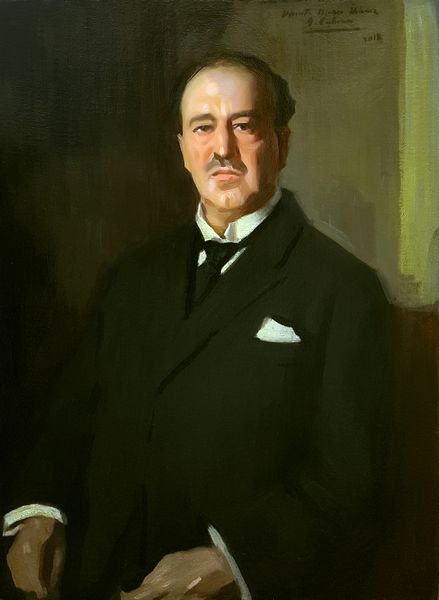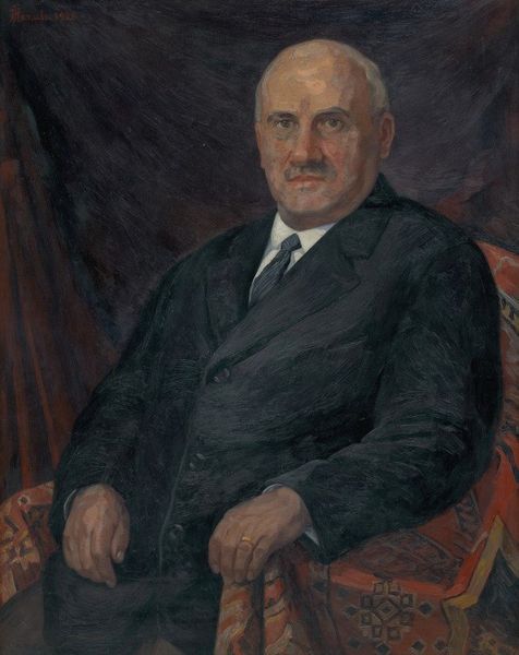 Franz von Lenbach painted this portrait of Otto Fürst von Bismarck, likely in 1894, using oil paint on canvas. The materiality of oil paint gives a depth and richness to the sitter's presence. Lenbach’s technique involves layering thin glazes of paint, which creates a luminous effect and allows light to penetrate and reflect off the canvas. The visible brushstrokes add texture and dimensionality, especially apparent in the rendering of Bismarck's face and uniform. The artist's skilled manipulation of light and shadow enhances the subject's features, conveying Bismarck’s gravitas and authority. The choice of oil paint is significant because it was traditionally associated with fine art, used for portraits of significant figures, while other materials were relegated to craft or decorative arts. By employing this method, Lenbach elevates his subject. Examining the materials, making, and context enables us to understand the rich cultural significance of this artwork.