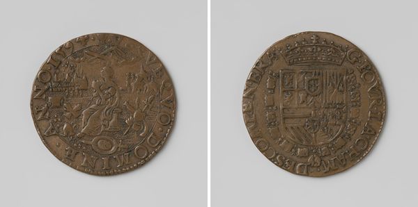 This coin, likely from the 17th century, bears powerful emblems of the Dutch Republic. One side shows a tree, perhaps a willow, resiliently growing from water, encircled by the words ‘Tandem fit surculus arbor’, meaning ‘Eventually the twig becomes a tree’. This symbol speaks to the young Republic's burgeoning strength and wealth, against all odds, as the tree itself becomes a metaphor for growth, resilience, and the cyclical nature of life. The tree here reminds us of similar images across cultures, like the Tree of Life, or the World Tree Yggdrasil, each resonating with subconscious notions of growth. But in this image, the tree's situation is significant – emerging from water, it evokes the Dutch struggle against the sea and their triumph over adversity. Like a phoenix rising from ashes, this symbol recurs across time, transformed yet intrinsically linked, engaging us on a primal level with the enduring power of hope.