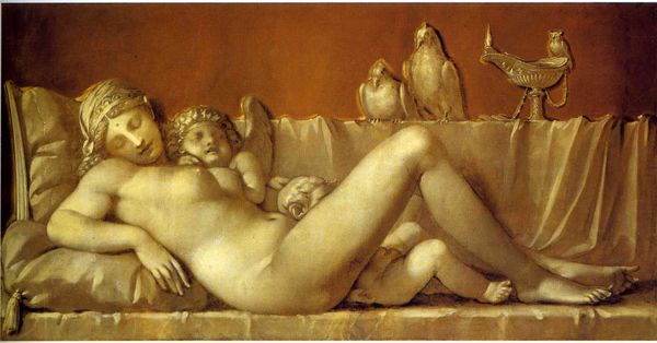 Pierre-Paul Prud’hon painted "The Noon" in oils, depicting a reclining nude with two cherubic figures, echoing classical antiquity. The symbols here, rooted in classical imagery, show a lineage of meaning. The reclining nude, a Venus figure, evokes beauty, love, and perhaps even a subtle invitation. These cherubs, or putti, with their musical score, tie into a rich tradition of associating music with harmony, love, and divine inspiration. One can trace this theme back to Renaissance art where musical angels were symbols of spiritual harmony. Over time, the motif of cherubs evolved, becoming more secular and associated with romantic love, as seen in Baroque and Rococo art. Psychologically, such symbols tap into our collective memory, stirring feelings of nostalgia and desire. This image, with its languid pose and harmonious setting, serves as an anchor, connecting us to the cyclical nature of human emotion and its expression through art.
