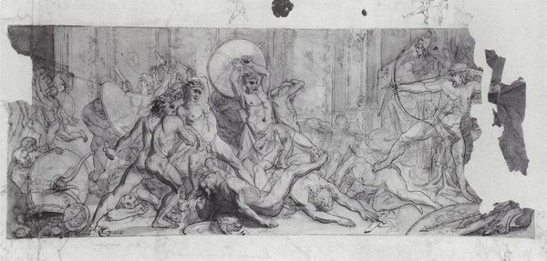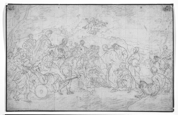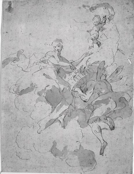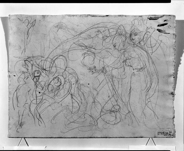 Orest Kiprensky rendered this drawing of Apollo in a chariot using graphite on paper. At first glance, the drawing may seem incomplete, yet its unfinished quality reveals much about its structural components. The figures, rendered in outline, lack distinct details, but through line alone, Kiprensky creates a dynamic interplay of movement and energy. Consider the semiotics of the line: it not only defines shape but also directs the eye, mapping out vectors of force. The rough sketch-like quality of the chariot, contrasting with Apollo's more defined physique, suggests a tension between the divine and the material, hinting at the broader philosophical dichotomy between ideal form and corporeal existence. Kiprensky uses linear perspective, but also subverts it by placing us, the viewers, in an ambiguous position. This destabilizes conventional understandings of space, inviting us to question the relationship between the viewer, the subject, and the act of representation itself. The unfinished nature of the work reveals its process, making it a site of continuous interpretation.