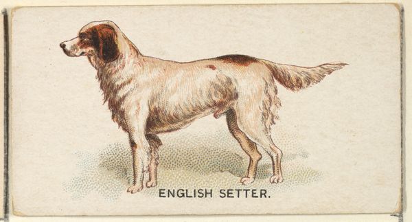 This is a late 19th-century chromolithograph of a Gordon Setter, made by Goodwin & Company for the Old Judge Cigarettes series. Its diminutive size belies a composition that is carefully constructed to present the breed's key attributes. The subject is rendered with a striking contrast between the dog’s dark coat and the amber highlights around its face, chest, and legs. The use of color is not merely descriptive; it creates depth and dimension. The texture, achieved through the lithographic process, lends a tactile quality to the image, inviting a closer look. The overall effect is one of poised elegance. The dog is centered and presented in profile, a pose that highlights the animal’s form while inviting semiotic interpretation. What does this careful composition tell us about the cultural values attached to this breed, or the aspirations of the smoking consumer who collected these cards? Perhaps the artist also plays with our understanding of representation and reality, blurring boundaries between documentation and idealized portraiture. Consider the small scale combined with the precision of detail. This emphasizes the material reality of mass production, which transforms nature into a collectable image, asking us to reconsider the very nature of art and its relationship to commerce.