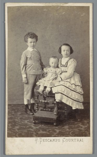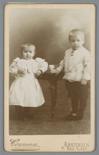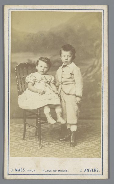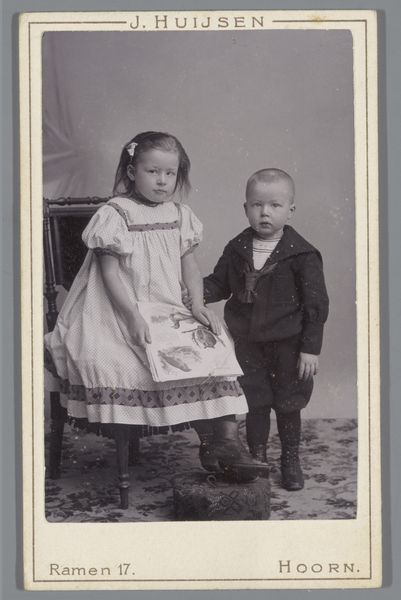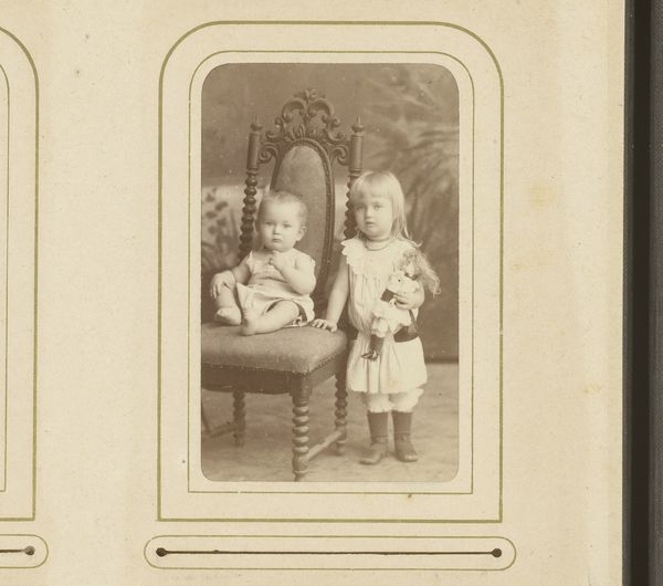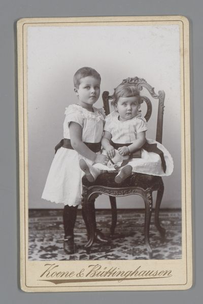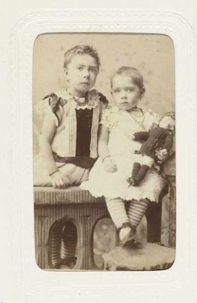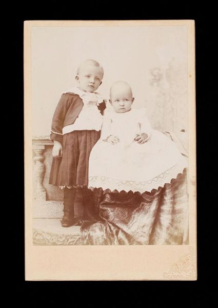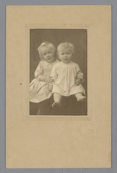 Editor: This photograph, "Untitled (girl and infant)" by Martin Schweig, is really striking. I’m curious about the elaborate dresses they are wearing. What do you see in this piece? Curator: I see a carefully constructed image reflecting the social expectations of childhood and class. The elaborate, impractical dresses speak to a family that could afford such garments and the labor to maintain them. Editor: So, it’s not just about aesthetics, but also about the economic context of the time? Curator: Precisely. The very act of commissioning a photograph was an investment, illustrating a desire to preserve and present a specific image of familial prosperity and status. Editor: I hadn't considered the photographic process itself as a form of consumption. Thanks!
