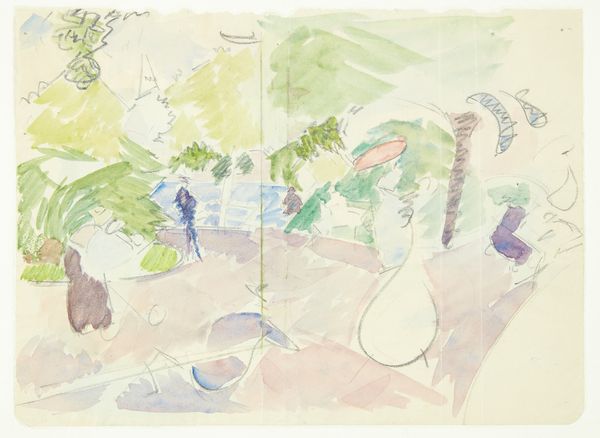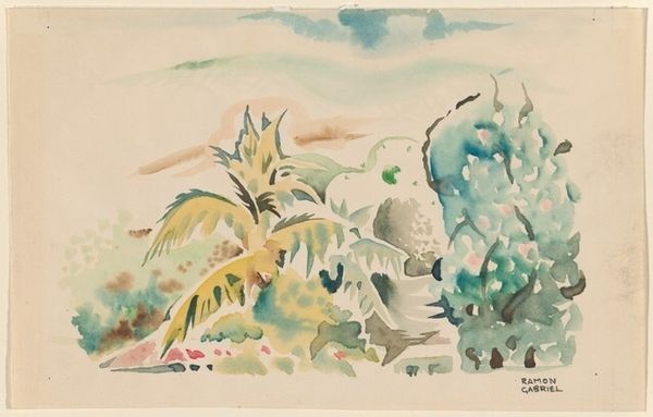 Editor: Here we have George Henry's watercolor, Horticultural Gardens, San Diego, California. It feels like a vibrant, almost overwhelming exploration of lush plant life. What can you tell me about this work? Curator: Consider the historical context. Early 20th-century California was being actively constructed as a paradise, wasn't it? How does Henry's representation of the gardens contribute to or perhaps complicate that narrative of idealized landscapes? Editor: That's interesting. So, you're saying it's not just a pretty picture, but something more? Curator: Exactly! It invites us to consider the politics of representation, the construction of place, and the artist's role in shaping our perceptions of it. Editor: I see. So much more to unpack than just the vibrant colors. Curator: Indeed! It's a starting point for critical inquiry.