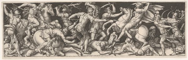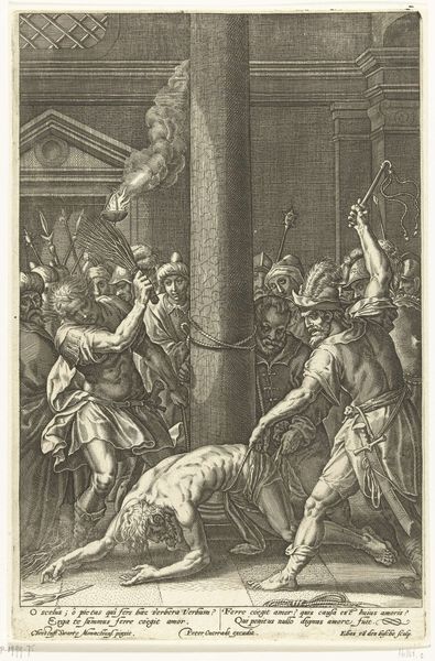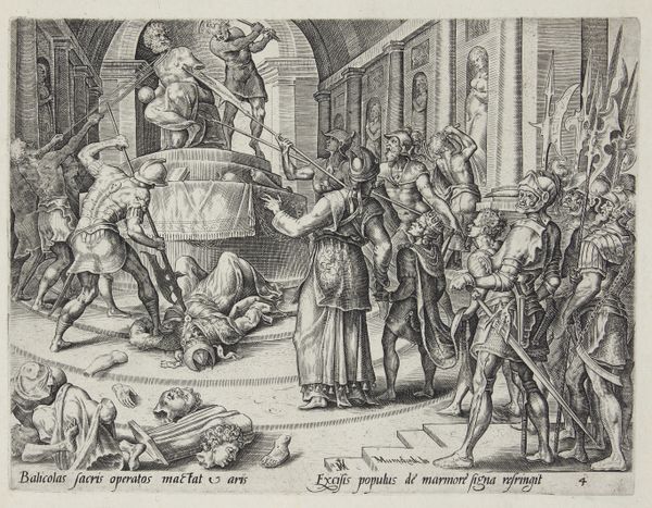Editor: This engraving, "The Stoning of the Elders" by Philips Galle, dates back to 1563. The image is quite stark, the crowd looks menacing and very focused on what they are doing, which is brutal and horrible. I'm struck by the level of detail achieved with just engraving on a plate. What do you see in this piece, from your perspective? Curator: Well, given the date, we must consider the social context and means of production. Engravings like this were essentially early forms of mass media. Galle’s workshop likely employed a number of artisans, each contributing to the final print. Think about the labor involved: the engraver meticulously carving the image into the metal, the printer pulling each impression, and the distributors getting the image out to the public. It was a commodity, traded and consumed like any other object. Editor: So, you're saying the print itself, as an object, carries as much significance as the image it portrays? Curator: Precisely! What impact did it have and to whom? This isn’t just an artistic expression. Consider, what would the masses of the day do with such a work once they got their hands on it? And where would it wind up at the end of its life? How long would it take to wear out? What other objects was it commonly seen beside, if any? Editor: That's a totally different way to look at it. I was focused on the people in the image. Curator: Indeed. I tend to see the circulation of the *thing* as more vital to unpack than merely the narrative elements within the lines and shades that we see. Editor: I never thought about the physical process of creating and distributing art in that much detail. Thanks, that gives me something new to consider with every work! Curator: Absolutely! Focusing on production and consumption reveals so much about a society's values.
