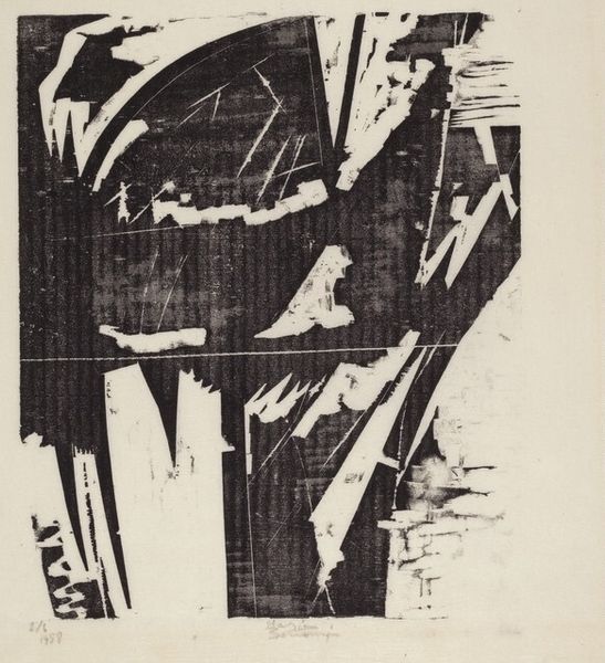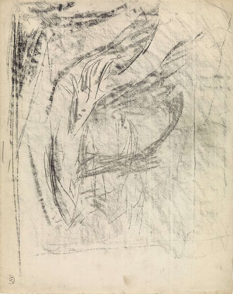 Curator: Looking at this untitled work by John Walker, I am struck by its raw energy; it feels almost volcanic, doesn't it? Editor: Absolutely. My first impression is of something suppressed, about to explode. The monochromatic palette adds to the intensity, and the bold brushstrokes feel almost violent. Curator: Indeed. Walker's visual language here seems to delve into primal forces. The prominent circle, disrupted and fractured, carries symbolic weight, perhaps alluding to cycles of destruction and regeneration. Editor: Or maybe a shattered lens, distorting our view of reality. The lack of a clear subject situates this piece within a broader context of abstract expressionism and its inherent political implications. Curator: Interesting thought. Personally, I read the visual symbols here through Jungian psychology, noting how the circle, usually symbolic for wholeness, has become broken. Editor: I appreciate how it allows for many readings. It serves as a reflection of the socio-political turmoil of the time. Curator: This is a powerful piece of art, reminding us that even in abstraction, there can be profound meaning. Editor: Exactly, and how important it is to ask what is being abstracted, and from what power structures.