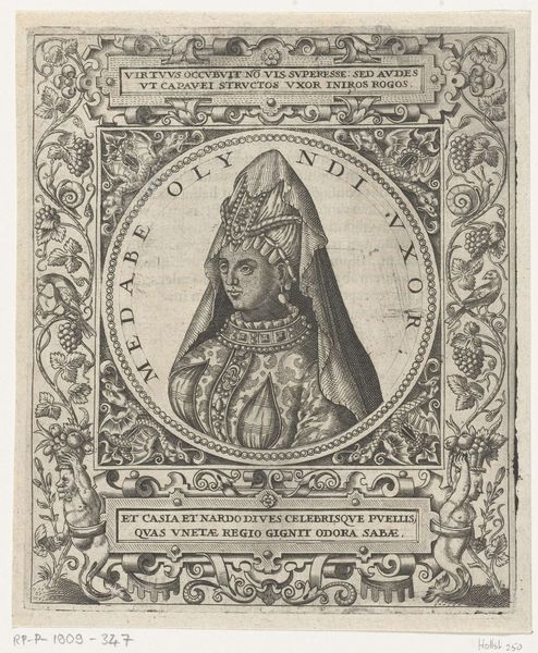 This engraving, "Portret van de sultane Corasi" was made by Theodor de Bry in the late 16th century. It depicts Corasi, wife of the Shah of Persia, and presents us with interesting questions about the cultural and political relations between Europe and the Middle East during the Renaissance. The image itself, with its decorative frame featuring flora, fauna, and Latin inscriptions, is a product of European printmaking traditions. It reflects a fascination with, and perhaps also a certain exoticization of, the East. Consider the way Corasi is presented, adorned with jewels and elaborate headwear. How might this image have been received by European audiences at the time? What did it communicate about power, gender, and cultural difference? To understand this print fully, we need to look at the historical context, the circulation of images, and the power dynamics at play. By researching period accounts and other visual materials, we can begin to understand the complex relationship between representation and reality in this early modern portrait.