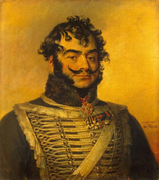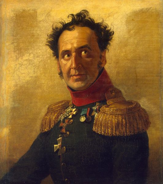 George Dawe painted this portrait of Vladimir I. Kablukov sometime in the early 19th century with oil on canvas. Dawe was an English portrait artist who gained considerable recognition in Russia for his portraits of Russian generals who participated in the Napoleonic Wars. Portraits such as this one played a crucial role in constructing and disseminating particular images of Russian military and political figures. The stern gaze and formal attire of Vladimir communicate power, authority, and nobility, reflecting the importance of social status and military achievement in that period. While seemingly celebrating individual accomplishment, these portraits can be seen as tools for reinforcing the values of the Russian aristocratic elite. What does it mean to have one's likeness captured and immortalized, especially when that image is consciously crafted to project a specific identity? How might such formal portraits both reflect and shape one's sense of self and societal role? The weight of history, status, and identity converge in this painting, prompting us to consider the complex relationship between representation, power, and the individual.