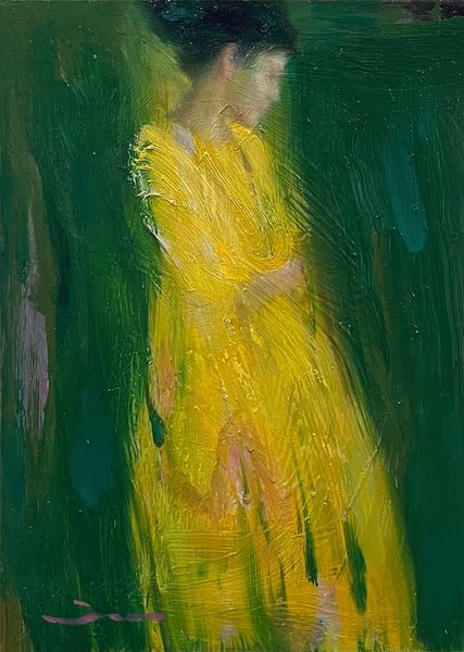 Curator: Here we have Alexander Roitburd’s "Self Portrait" from 2007, rendered in oil on canvas. My immediate reaction is one of… unsettling tranquility? The vibrant greens are almost at odds with the subject matter. Editor: Tranquility is an interesting take. For me, it's the raw physicality that hits first. The thick impasto application of the oil paint makes the figure seem almost sculpted, like a monument built from viscous material. What statements are being made about the materiality and substance of the art process itself? Curator: Well, consider the sociopolitical landscape in Ukraine during that period. The orange and green could refer to political factions at the time, while the art market was flourishing amidst ongoing turbulence. Was Roitburd using the neo-expressionist style as a reflection of a society’s angst about value and consumption? Editor: Interesting that you bring that up; it really speaks to your interest in the historical forces present. Looking at the ropes binding the figure's wrists, it emphasizes the power dynamics inherent in production. Are we considering, perhaps, the restraints put on artistic labor during that time? Curator: Absolutely! The museum becomes a battleground for narratives and it certainly challenges how these artworks achieve cultural prominence or relevance and, also how society shapes our interpretation. I can only guess the power structures involved in Ukraine at the time, specifically influencing this visual piece. Editor: And think of how art history, art institutions and markets can turn raw materials and processes into symbols of prestige. Roitburd's "Self Portrait" could also highlight a kind of cultural and self-commodification, using one's image and emotions as a form of marketable identity within contemporary art. Curator: It's powerful how the artwork prompts us to ask a question regarding whose stories the institutional narrative has highlighted in history. It invites us to re-evaluate historical interpretations and museum practices, thus highlighting critical societal issues. Editor: Definitely food for thought on the artist's part. I think, to wrap it up, we can confidently consider what tangible elements in this artwork and the environment that produced it teach us about Roitburd's art and identity, don't you think? Curator: Certainly, this allows us to move towards a larger understanding regarding art's engagement with wider political, historical and social conversations and meanings.