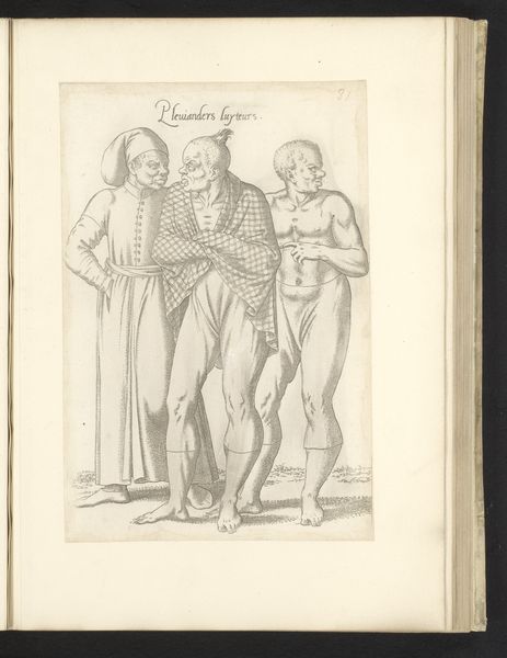 Curator: Immediately striking! This ink drawing evokes a strong sense of raw power and unsettling intensity. Editor: Indeed. We're looking at a work titled "Turkse geestelijke van de orde der Dervis, of Darvis" attributed to Léon Davent, likely created between 1555 and 1568. Davent captured a Turkish religious figure, a Dervish, using only ink on paper. What do you make of the subject, the Dervish? Curator: What strikes me first is the lens through which this image is presented. This wasn't about documenting, but likely a depiction deeply filtered through a Western European gaze prevalent at the time. His near-nakedness, the fur pelt – it's performative exoticism, not ethnographic accuracy, pointing to orientalist tropes. I wonder what purpose the artist or patron intended with such a provocative depiction? Was this a visual symbol for demonizing those the West labeled as "other," and therefore enemies, reinforcing cultural biases? Editor: Those points are very valid and speak to the socio-political forces at play. The choice of imagery itself, particularly the Dervish, and his presentation speaks volumes. It is important to understand what motivated the creation of works such as this one in their specific context. This piece enters the conversation in regards to the dynamic relationship of cultures during the Renaissance and Early Modern era and their impact and the depiction in the cultural representation that the artist renders on the artwork. What did his audiences in Europe perceive in this character during that specific time in History? How was it used? Curator: Precisely! We cannot separate the artistic intent from its socio-historical setting, can we? Seeing this not just as a portrait, but as an artifact reflecting power dynamics, forces me to ask questions about how representation either perpetuates or disrupts existing power structures. Editor: Absolutely. We need to keep pushing those discussions in art historical analyses. Examining such portrayals for their place in the larger political picture enriches the discussions around pieces of artwork such as this one. Thank you for illuminating the context so effectively. Curator: And thank you for guiding us to explore that context. These old works of art continue to be so relevant.