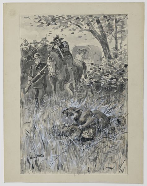 Curator: This lithograph from 1886 is titled "Spotprent over de afschaffing van de suikeraccijns," which translates to "Cartoon about the abolition of the sugar tax." It's a piece by Jan Holswilder, originally printed in De Lantaarn No. 15. Editor: It’s unsettling, actually. The contrast is very sharp; the eye is immediately drawn to the seemingly ill figure reclining in the foreground, the palette somber, almost monochromatic due to the printing process. What were the common lithographic practices in the 19th century? How might they shape interpretation? Curator: Holswilder’s choice of lithography allowed for relatively inexpensive reproduction and mass distribution. That in itself speaks to the artwork's function as a form of social commentary, meant for a wide audience to understand and engage with the sugar tax debate. The materiality inherently makes this more democratic than a singular, expensive oil painting. Editor: Absolutely. And look how the figures are rendered – almost caricatures of themselves. We've got the Dutchman portrayed as a somewhat bumbling doctor and the ill figure and pleading woman seeming more obviously local inhabitants, possibly from Java, or the Dutch East Indies. Is it implying a colonial relationship between the Netherlands and its colonies through its production methods and characterizations? Curator: Precisely. The political implications are layered within the depiction. Sugar was a key commodity in the Dutch colonies, and the sugar tax affected trade and consumption significantly. The characters, materials and caricatures reflect the socio-economic disparities that the tax exacerbated between colonizer and colonized, reflecting its impact. Editor: I see a dark bird of prey looming at the top of the cartoon, and a sort of bulldog in the lower corner, as well as the inscription below referring to medication. What meanings might this hold? Curator: The predatory bird possibly symbolises impending disaster of some sort, and I would guess that the dog reflects subservient compliance. But I'm happy to look more into that. What strikes me is how it uses its materials, and its mass audience, to engage its viewers politically, but not everyone would have been well-represented. Editor: The lithograph has really sparked discussion regarding colonial policies of the time. I had just not expected that kind of critique from this imagery at first glance.