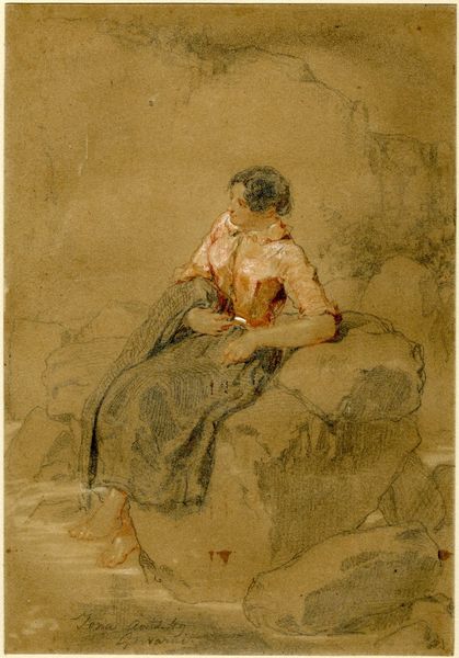 Sir John Everett Millais created this painting, "Message from the Sea," with oil on canvas, in England. It depicts a young woman seated on the shore, absorbed in reading a note she has presumably found in a bottle, washed up from the sea. The painting reflects the Victorian era's fascination with sentimental narratives, particularly those involving themes of loss, hope, and the unknown. The woman is dressed in simple clothing and her bare feet suggest a working-class background, highlighting the social realities of the time. This genre of painting was part of a much wider visual culture that included prints, book illustrations, and photography. The institution of the Royal Academy played a key role in promoting and shaping the careers of artists like Millais, setting standards for artistic excellence and dictating the kinds of subjects that were deemed acceptable. Paintings like this one reflect and reinforce the dominant social values of Victorian society. Art historians use a range of resources, including exhibition catalogues and contemporary reviews, to better understand the original context of such works.