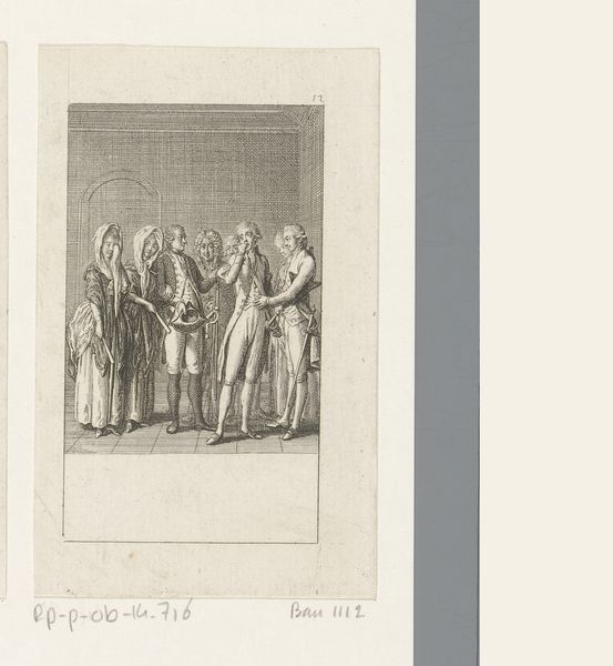 This etching titled ‘Karikaturen’ was created by Daniel Nikolaus Chodowiecki, and is currently held in the Rijksmuseum. Notice how the artist uses the technique of etching to create a lively scene, teeming with character and detail despite its diminutive size. The composition unfolds horizontally, guiding our eyes across a procession of figures rendered with caricature-like exaggeration. Lines are etched with precision to define the contours of each character, from their elaborate costumes to their distinctive postures. Notice how Chodowiecki employs line as a means of both describing form and conveying movement. These exaggerated forms can be understood through the lens of semiotics, in which the artist encodes layers of meaning through visual symbols. The characters are not merely representations of people, but rather signifiers of social class, fashion, and perhaps even moral character. The careful arrangement of the figures within the pictorial space suggests a complex interplay of social dynamics, inviting us to decode the underlying structures of power and representation.