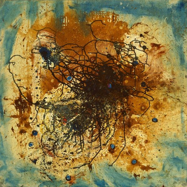 Stanley Boxer made this painting, "Capturestheheartland", with what looks like very thick paint, maybe even some kind of impasto medium mixed in there. It's like he's building up a landscape out of pure texture. The big, warm central area is this craggy, almost geological form, surrounded by these vibrant fringes of orange, blue, and green. I'm drawn to those little white drips at the top, like tiny waterfalls or maybe just the painting itself weeping. There's something so physical about the way he applies the paint. You can almost feel the weight and drag of the brush. It reminds me a bit of Joan Mitchell, in the way she uses color and gesture to create a feeling of intense, almost overwhelming emotion. But Boxer has his own thing going on, this real sense of earthiness and materiality. It's like he's not just painting a picture, but making a thing, an object that exists in the world.